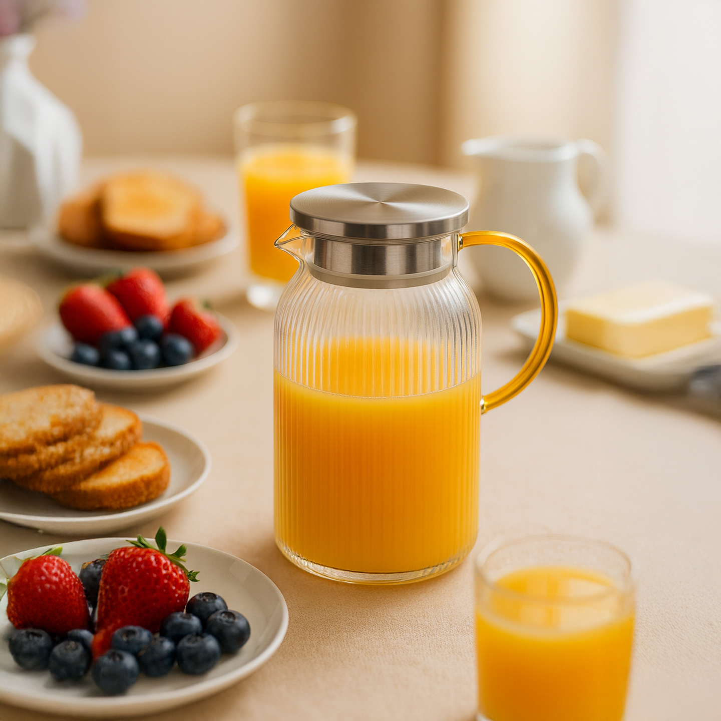 Esta jarra de vidro borossilicato com capacidade de 1,5 litros combina elegância, resistência e praticidade para o uso diário.