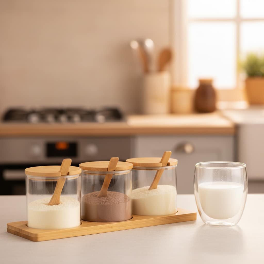 O kit com 3 porta-condimentos em vidro de borossilicato, com colher, tampa e base de bambu, é a solução perfeita para armazenar e organizar seus temperos com estilo e funcionalidade. Feitos de vidro borossilicato, esses porta-condimentos são duráveis e resistentes a variações de temperatura, mantendo seus condimentos frescos e facilmente acessíveis. As tampas de bambu, combinadas com a vedação em silicone, garantem que os condimentos fiquem protegidos contra umidade e vazamentos. O conjunto inclui colheres práticas e uma base de bambu que mantém os porta-condimentos organizados e à mão na sua cozinha. Este kit não só é funcional, mas também adiciona um toque de elegância natural à sua decoração.