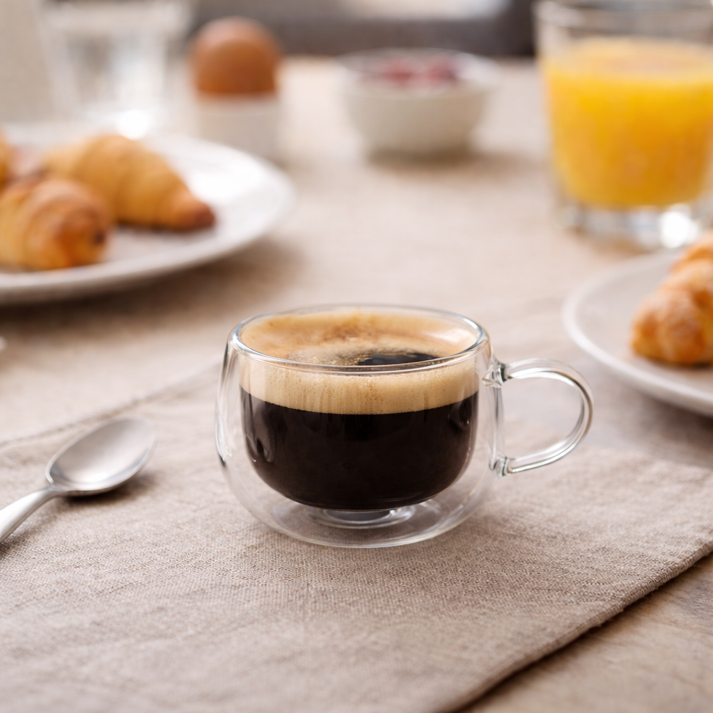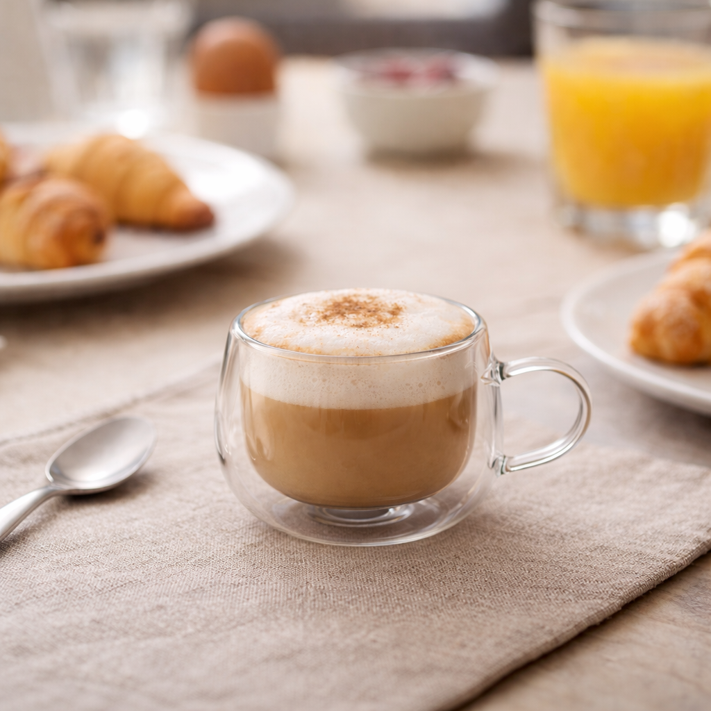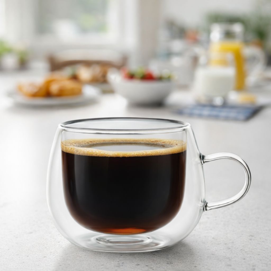 A xícara de vidro duplo de 150ml é uma escolha estilosa e funcional para bebidas quentes ou frias, com design de parede dupla que proporciona isolamento térmico, mantendo a temperatura ideal da bebida e prevenindo aquecimento ou condensação externa. Feita de vidro borossilicato, é resistente e durável, além de elegante e moderna. Com capacidade para 150ml, é perfeita para café, chá, cappuccino, ou outras bebidas, permitindo apreciar a apresentação através de seu design transparente, enquanto oferece conforto e segurança ao segurar. Ideal para uso diário, combina praticidade e sofisticação, sendo uma adição valiosa à cozinha.